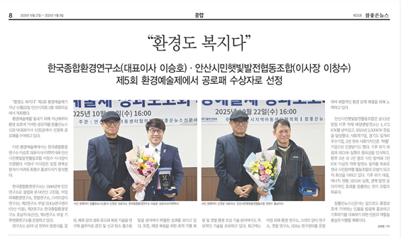 본사 이승호 대표는 2025.10.22일 참좋은뉴스신문사 선정 환경예술제 환경공로패 수상의 영예를 안았다.